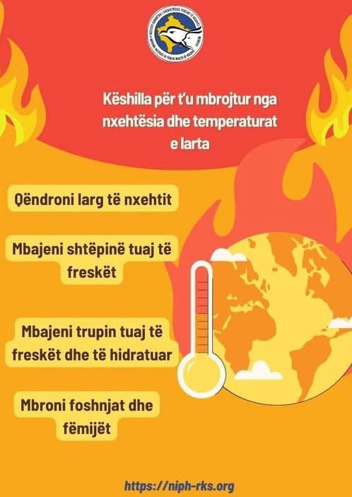 #Ballina #Kosova #Lajme Këshilla për mbrojtje nga nxehtësia ekstreme – Instituti Kombëtar i Shëndetësisë Publike të Kosovës jep rekomandime Këshilla për mbrojtje nga nxehtësia ekstreme – Instituti Kombëtar i Shëndetësisë Publike të Kosovës jep rekomandime Vala e të nxehtit info@zerivushtrrise.com / 8 months Comment (0) (100)