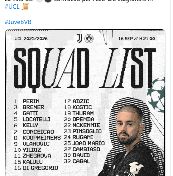 Ftesa e 26-vjeçarit erdhi si befasi, pasi ai ishte duke ushtruar për rikthimin e tij në fundjavë në Serie A kundër Veronës. Megjithatë, përballë Dortmundit pritet të jetë të paktën në bankën e rezervistëve.