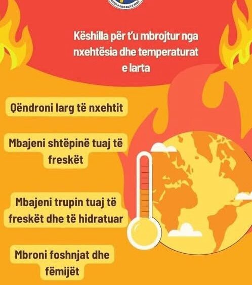 Vala e të nxehtit që ka përfshirë vendin këto ditë po rrezikon shëndetin dhe mirëqenien e qytetarëve, veçanërisht të grupeve më të ndjeshme si të moshuarit, fëmijët dhe personat me sëmundje kronike. Temperaturat e larta, të cilat zgjasin ditë e natë, mund të shkaktojnë rraskapitje, goditje nga nxehtësia dhe përkeqësim të gjendjeve shëndetësore ekzistuese.