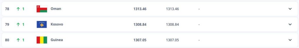 Kombëtarja e Kosovës ka përparuar për një vend dhe tani renditet e 79-ta, ndërsa Kombëtarja Shqiptare mbetet në pozitën e 63-të pa ndryshim.