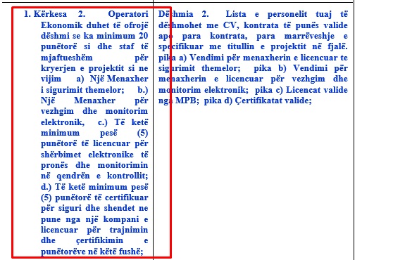 Sipas raportit të ZKA-së, kompania fituese M-GR Security SH.P.K kishte paraqitur listën e stafit teknik, ku njëri prej punëtorëve ishte njëkohësisht i punësuar si monitorues i kamerave në Drejtorinë e Administratës të komunës – autoriteti që shpalli fituesin e tenderit. Auditori vlerëson se kjo përfshirje paraqet një rrezik për konflikt interesi.