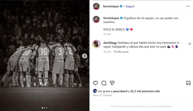Zërave kritikë iu bashkua edhe mesfushori Fermín López, i cili reagoi në rrjetet sociale ndaj golit të anuluar të Lamine Yamal për pozicion jashtë loje. Fermín publikoi në Instagram një fotografi të pamjes së VAR-it të shfaqur gjatë transmetimit televiziv, të shoqëruar me disa emoji duke qeshur, duke ironizuar vendimin e marrë.