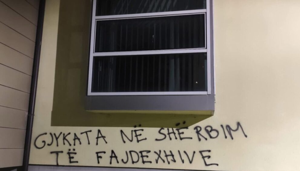 Revoltë në Gjilan pas vrasjes së trefishtë, muret e gjykatës mbushen me mbishkrime
