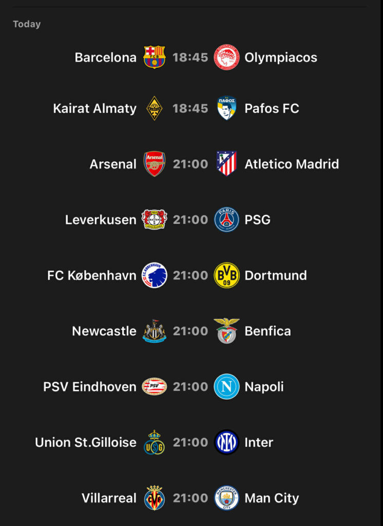 Më pas, në orën 21:00 do të zhvillohen ndeshjet e tjera, ku vëmendja kryesore do të jetë në Londër, ku Arsenali pret Atletico Madridin në stadiumin “Emirates”. Po ashtu, Bayer Leverkuseni do të presë kampionin në fuqi të Evropës, Paris Saint-Germainin, në “BayArena”.