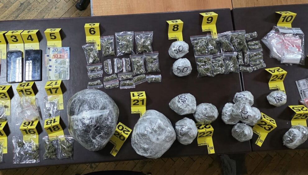 Substancë narkotike që dyshohet të jetë marihuanë, me peshë 2 kg e 358 gramë, e ndarë në doza për shitje (vlera e tregut ilegal rreth 11,000 euro); 115 euro para të gatshme; Një peshore elektronike; Qese dhe foli najloni për paketim të narkotikëve; Dy telefona mobilë; Një veturë me targa vendore.